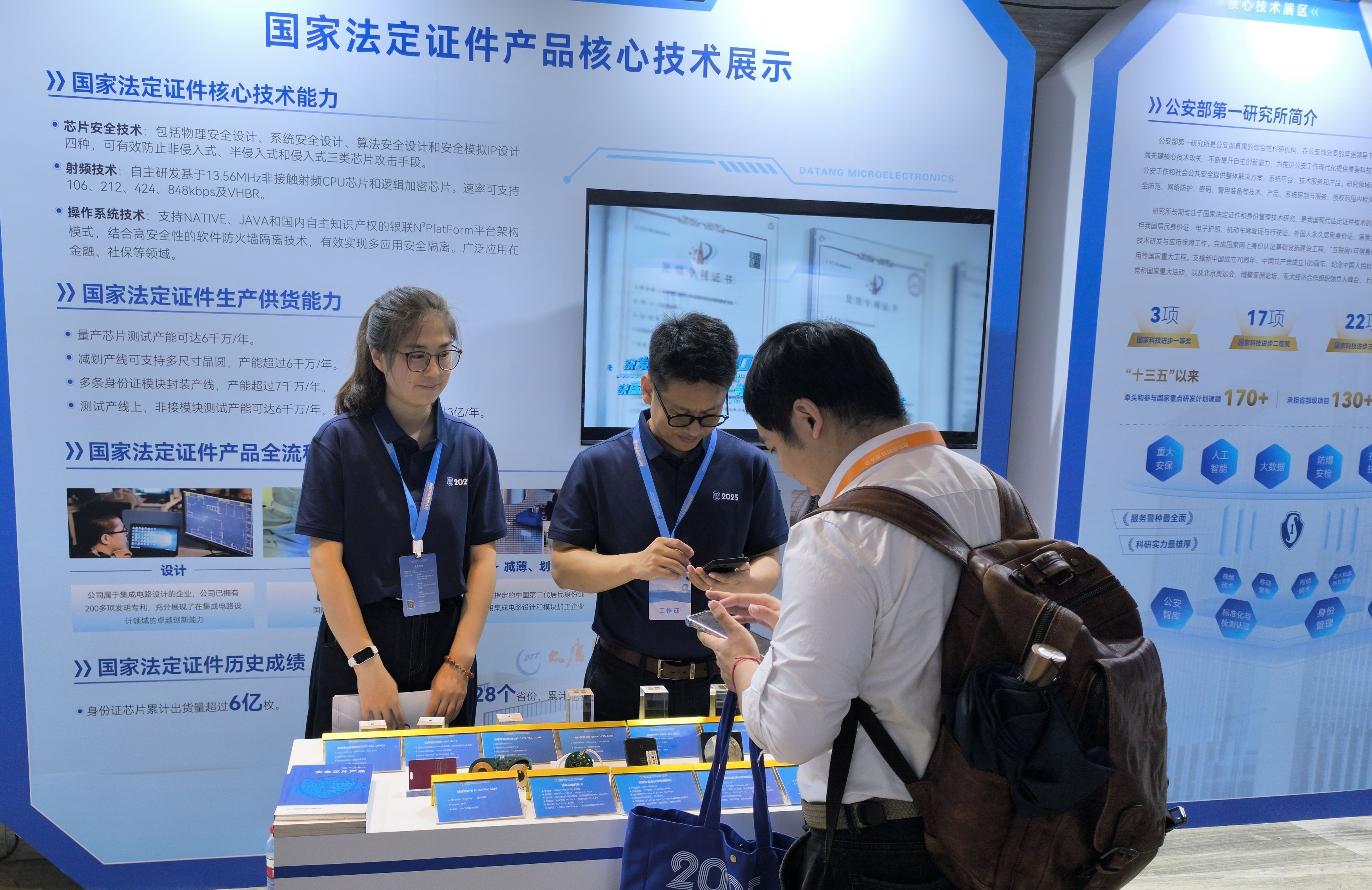 核心展區(qū),聚焦國(guó)家法定證件核心技術(shù)全流程能力展示,完整呈現(xiàn)從芯片設(shè)計(jì)、減薄劃片、封裝、測(cè)試到預(yù)個(gè)人化的全鏈條自主可控能力。在安全防護(hù)體系構(gòu)建上,大唐微電子創(chuàng)新打造物理安全、系統(tǒng)安全、算法安全、安全模擬IP設(shè)計(jì)四大防護(hù)矩陣,形成對(duì)非侵入式、半侵入式、侵入式三類(lèi)芯片攻擊手段的有效抵御。射頻技術(shù)領(lǐng)域,自主研發(fā)的13.56MHz非接觸射頻CPU芯片和邏輯加密芯片支持106至848kbps多速率傳輸及VHBR高速模式,技術(shù)指標(biāo)達(dá)國(guó)際先進(jìn)水平。操作系統(tǒng)技術(shù)方面,支持NATIVE、JAVA和銀聯(lián)操作系統(tǒng)平臺(tái)架構(gòu),結(jié)合高安全性軟件防火墻隔離技術(shù),實(shí)現(xiàn)多應(yīng)用安全隔離,已廣泛應(yīng)用于金融、社保等關(guān)鍵領(lǐng)域。法定證件領(lǐng)域成果斐然:身份證芯片累計(jì)出貨量突破6億枚,社??ǜ采w全國(guó)28個(gè)省份、累計(jì)出貨量超5億枚,金融IC卡已在百余家商業(yè)銀行實(shí)現(xiàn)規(guī)模化發(fā)卡。生產(chǎn)供貨能力方面,企業(yè)已建成年產(chǎn)6000萬(wàn)片的量產(chǎn)芯片測(cè)試產(chǎn)線,減薄劃片產(chǎn)線支持多尺寸晶圓加工、產(chǎn)能超6000萬(wàn)片,身份證模塊封裝產(chǎn)線年產(chǎn)能超7000萬(wàn)片,非接模塊測(cè)試產(chǎn)能達(dá)6000萬(wàn)片、接觸模塊測(cè)試產(chǎn)能超3億片,形成強(qiáng)有力的國(guó)家法定證件生產(chǎn)保障體系。